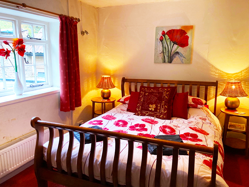 This comfortable room has a double bed, en-suite bathroom and a lovely view over the hills behind the Cottage.