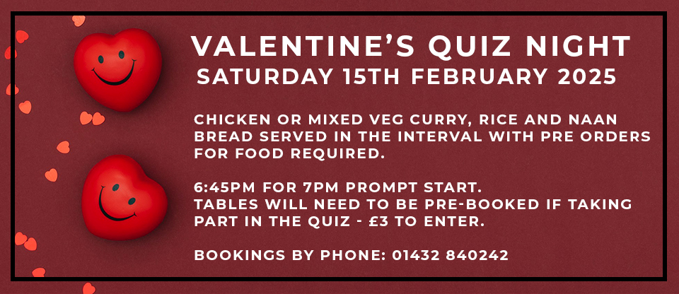 OPEN evening only Food 5:30pm – 8pm. Last orders 9pm